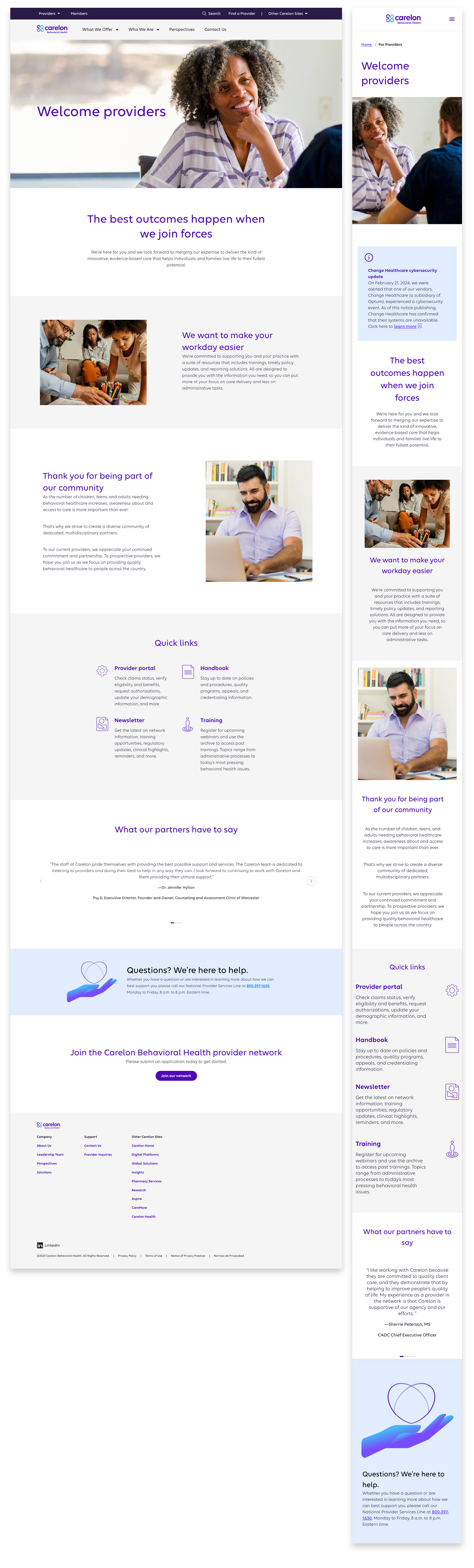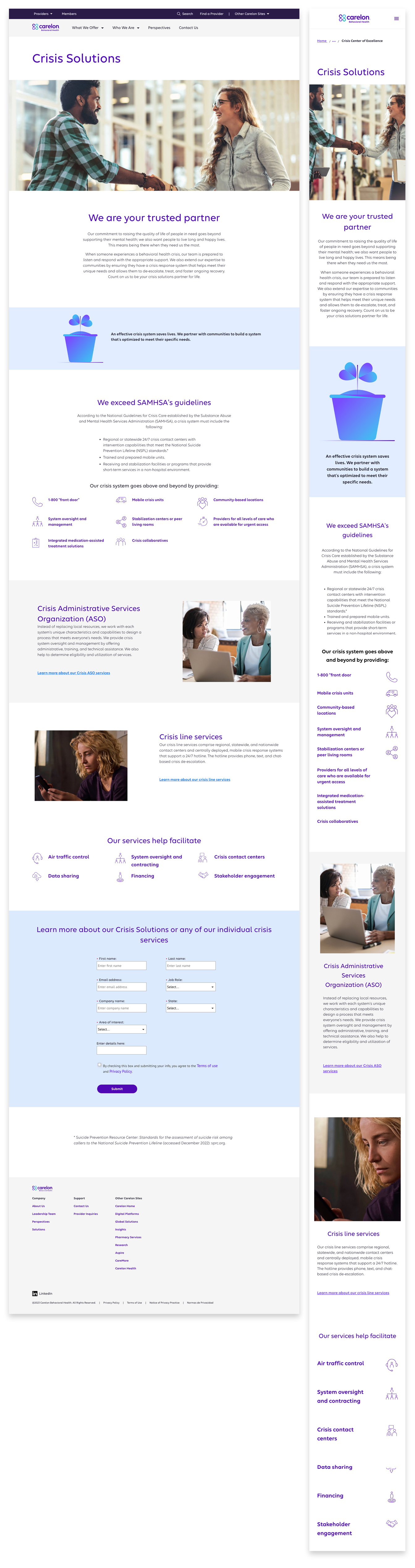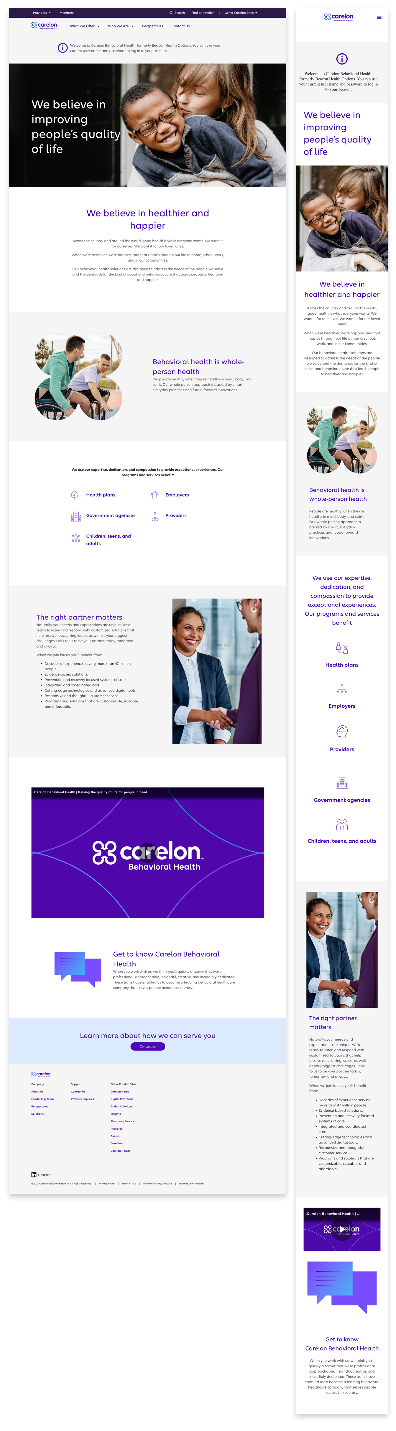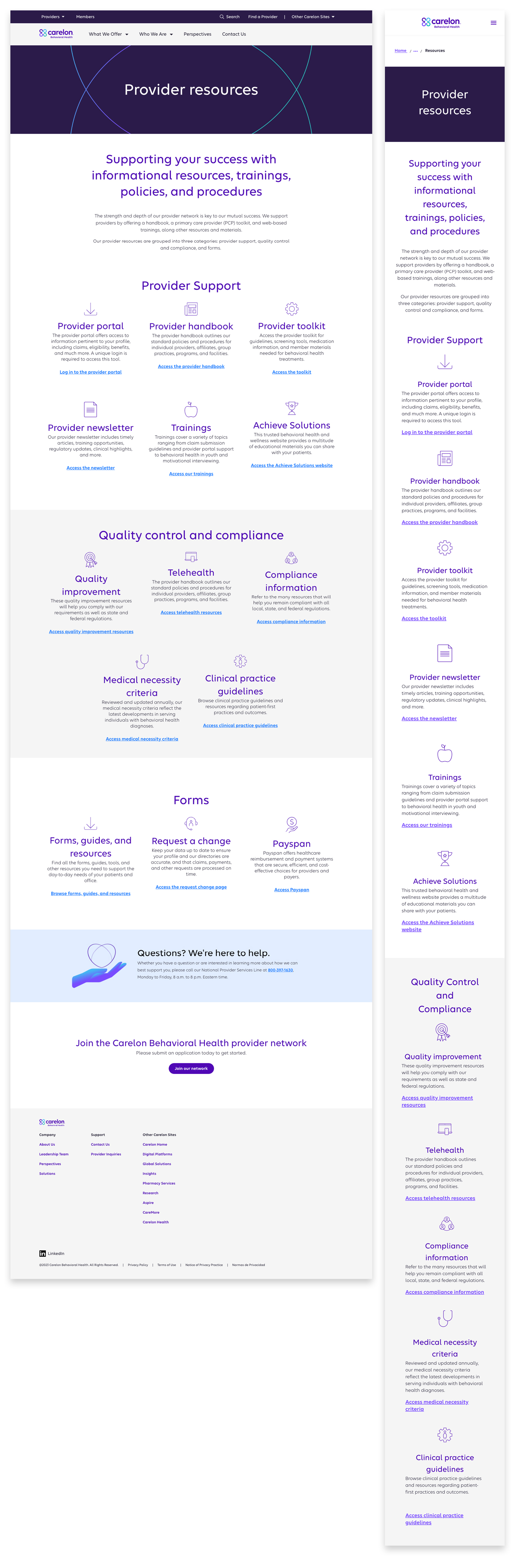 As the lead UX Designer for Anthem’s Behavioral Health services site, I developed over 130 desktop and mobile mockups and corresponding wireframes, all within a demanding timeline. A key achievement was streamlining over 100 doctor and care center location detail pages into a single, efficient page UI. This consolidation significantly reduced development efforts and avoided the need for enhancements to existing components, optimizing both the user experience and resource allocation.