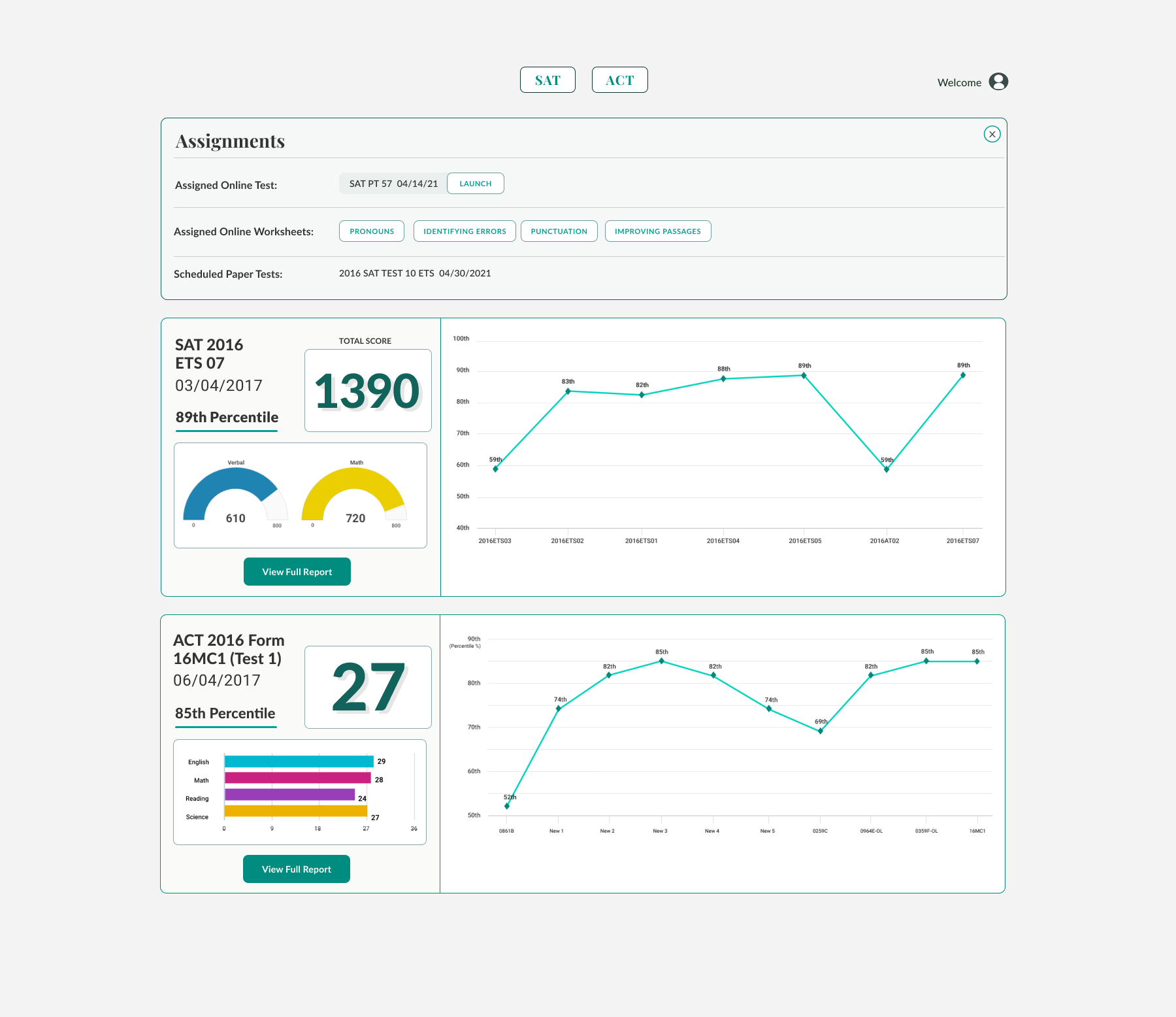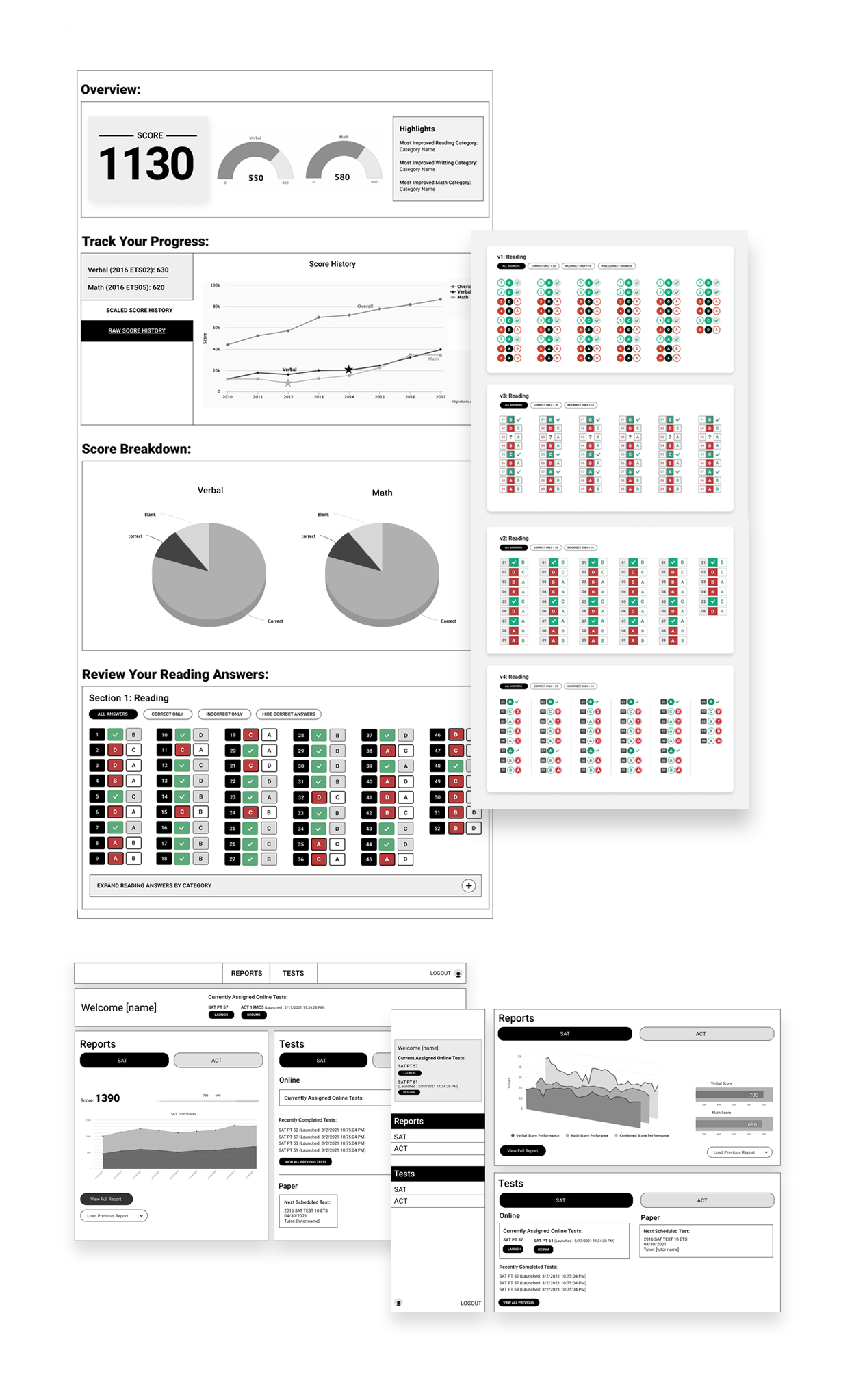 A long time client and leader in the College Test Prep field approached me to create a new app to facilitate the current video/in-person paradigm that has disrupted their long standing in-person based business model. Beginning with a Word document containing only asp.net data outputs displayed through MS Word form fields, I worked with their Technology Director to guide and execute every stage of the product life cycle, from the branding, personas, user stories, tutor/student interviews, wireframes, dozens of UI pattern iterations, and finally the visual design and front-end HTML/CSS/Bootstrap4 development.