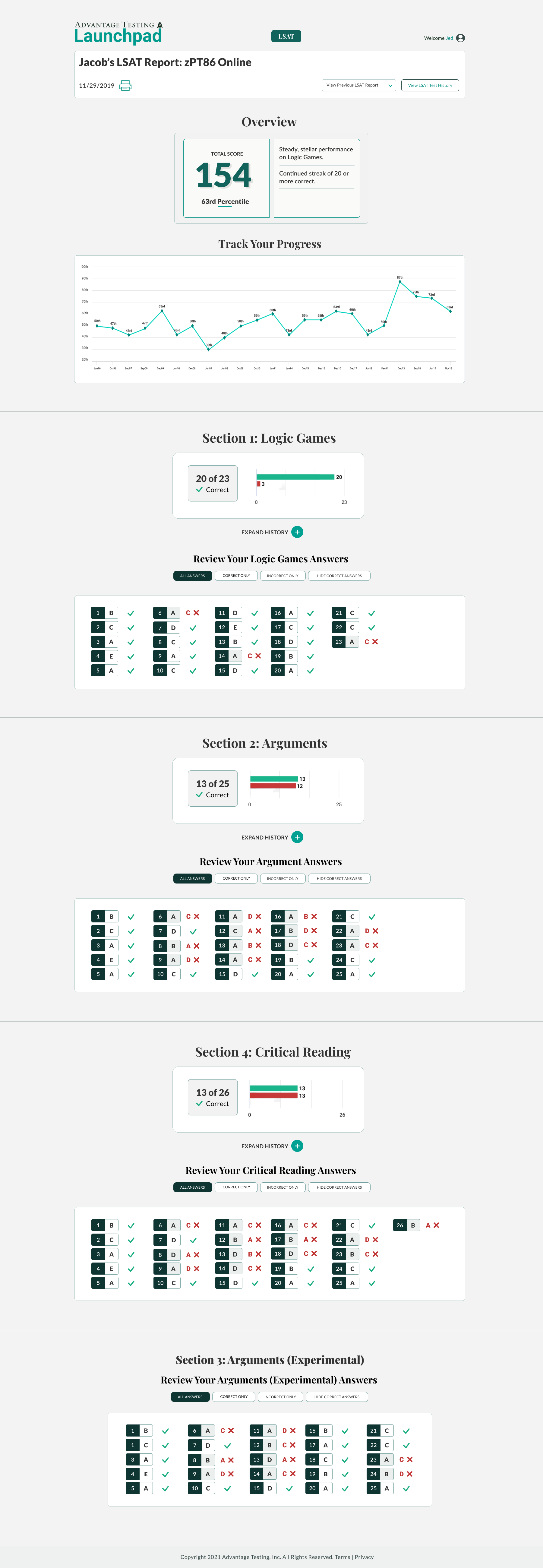 The main goal of the app is to provide test reports to parents in the most effective and visually appealing way possible, while also serving as a platform for tutors to work with students to be able to quickly identify areas that need improvement and tailor their instruction accordingly based on the metrics in the report.